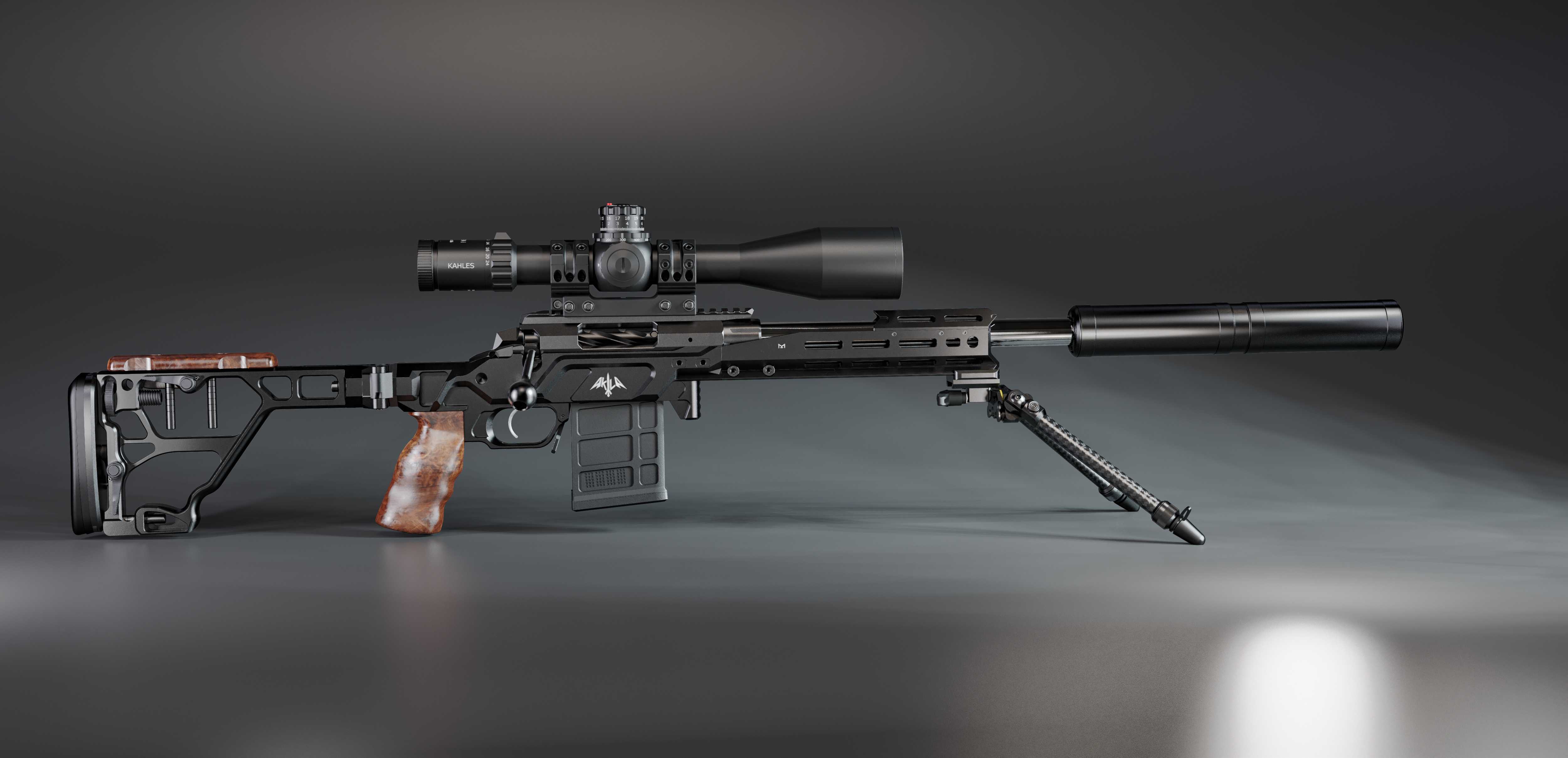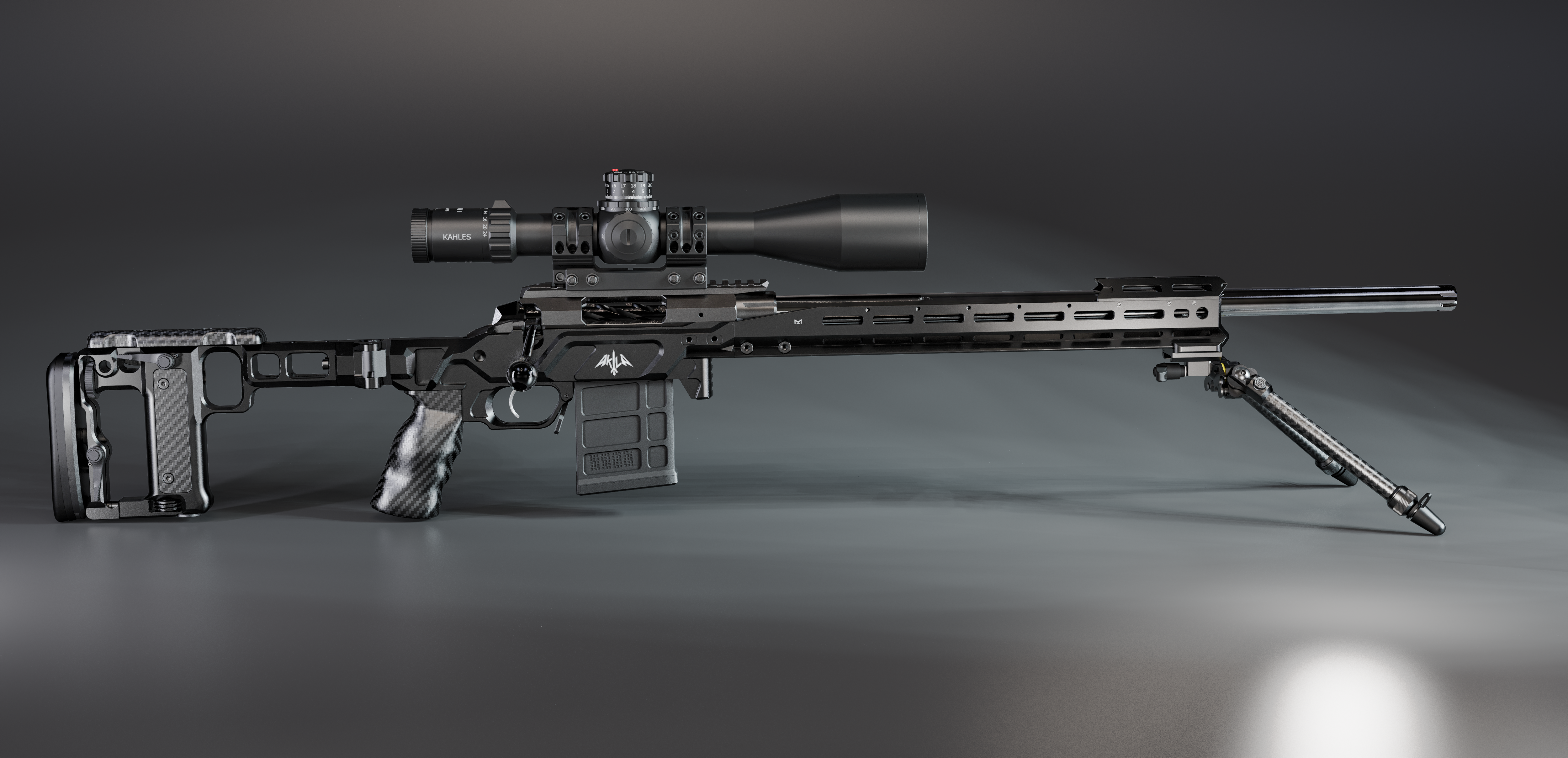 You can use the configurator to choose optional foreend and buttstock features. AKILA products are machined from high-grade aluminium and have a black hard coat anodized finish. All steel parts have special surface treatment that increases surface hardness, ensures improved wear and corrosion resistance. Only stainless steel screws are used in our products, to match the black colour we have treated these with special black bluing.