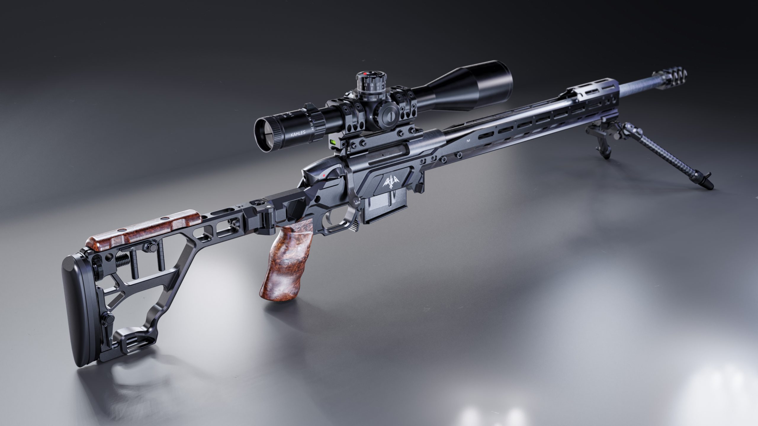 Both AKILA buttstocks are machined out of 7075 T651 aluminium billets and have a black hard coat anodized finish and features QD sling swivels sockets on both sides. Both buttstocks offer a possibility to adjust the cheek piece height and side, the length of pull, recoil pad height. Besides that Buttstock M features a built-in quick deployable and fine adjustable monopod and buttstock Lite has one MLOK™ slot to mount a monopod or a custom bag rider. The buttstock mounting point of the AKILA chassis is compatible with AR-15 receiver extensions, which will allow installing AR butt stocks. The buttstock folding can be user configured and folds to left or right sides of the chassis.