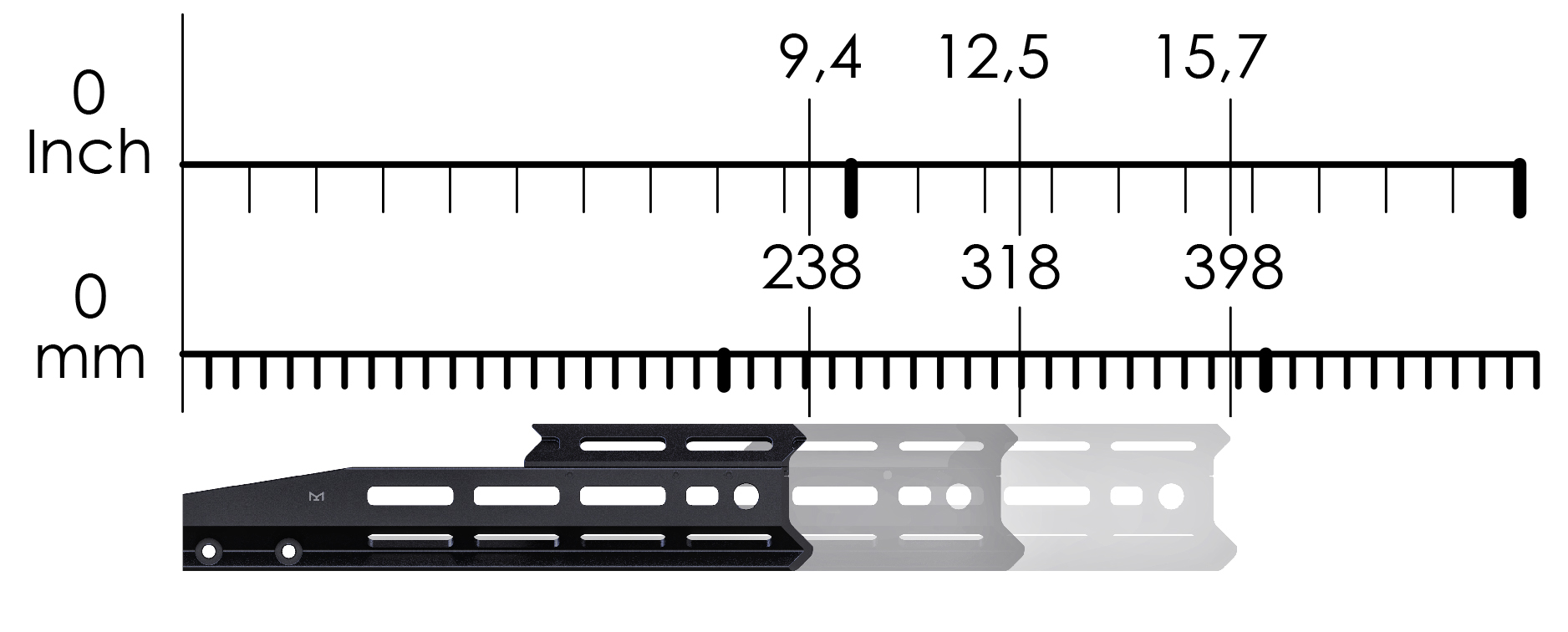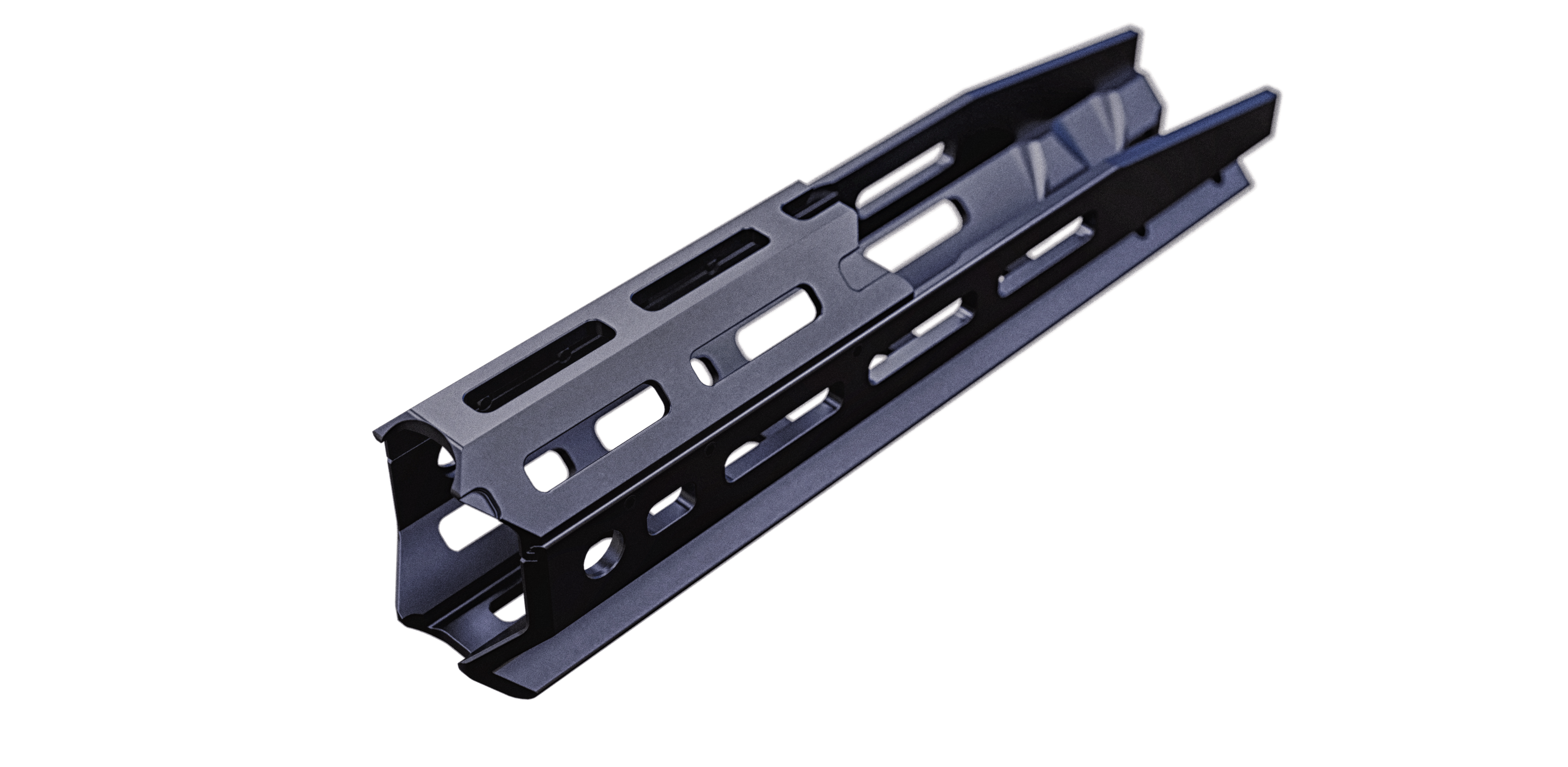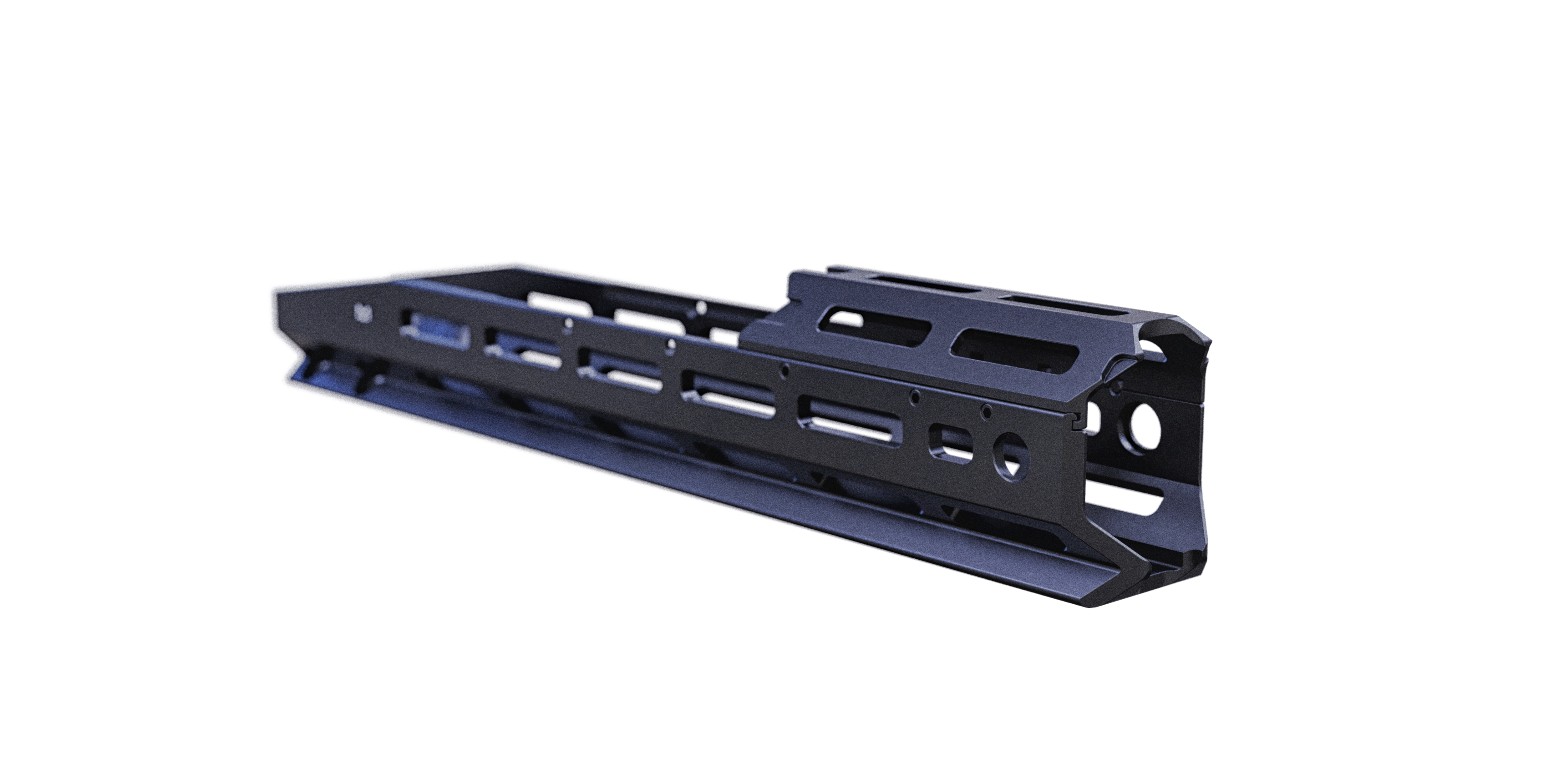 ARCA Foreend X is a fully milled out of a 7075 T651 aluminium billet and has a black hard coat anodized finish. Foreend X is supplied with a take down AKILA Foreend Upper bridge for top mounted accessories. The upper bridge is easily removed and can be installed in different positions to ensure optional distance between the scope and the front mounted accessories. The six sides of the foreend feature M-LOK™ mounting interface and QD sling swivel sockets at the very front, at 3 and 9 o’clock. The 6 o’clock side features a full length ARCA Swiss rail.