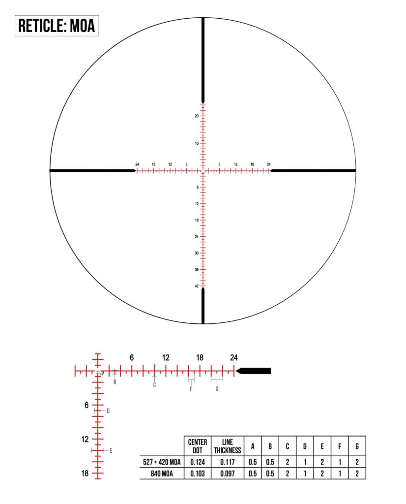 With an elevation adjustment range of 28mils and a field of view of 4.6m/100m — 1.0m/100m at 40x magnification, you’ll have a substantial image to keep your target in view.